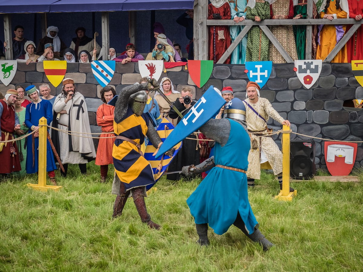 Можно просто посмотреть, а можно поучаствовать. Посетителей ждет лагерь феодала (фоточки в антураже), средневековый театр и музыканты, конный рыцарский турнир (брутальность!), парк осадных машин (ее — технологии средневековья!), пешие бои (бугурты!), и шанс обучиться семи рыцарским благодетелям. Фестиваль идет один день, все довольно компактно и насыщенно по времени. Несколько фотографий: