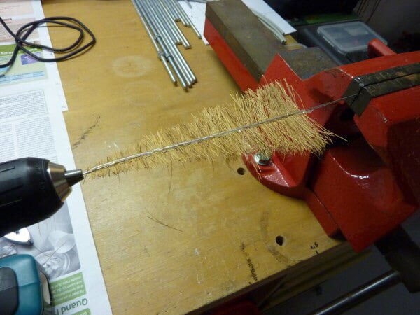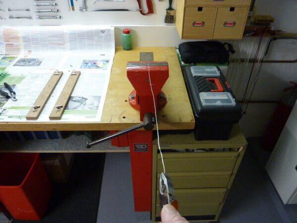 9. Закрепляем один конец в тисках, другой в дрели, и на медленных оборотах накручиваем получившуюся заготовку.
