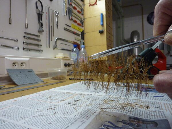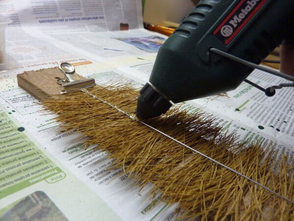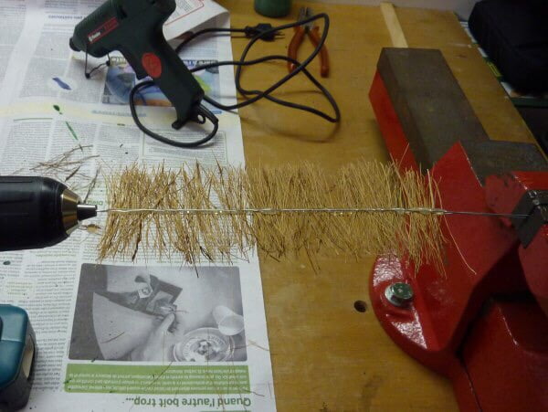 7. Размещаем «ветки», над ними каким либо образом закрепляем проволоку. Убираем слишком короткие «ветки», или некачественные.