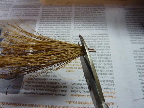 - Берем швабру с подходящей щетиной, вырываем клочки.