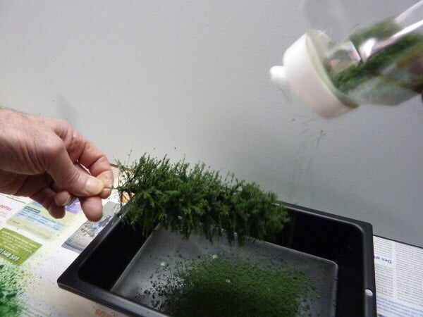 10. Придаем конусообразную форму елки путем подрезания ножницами.